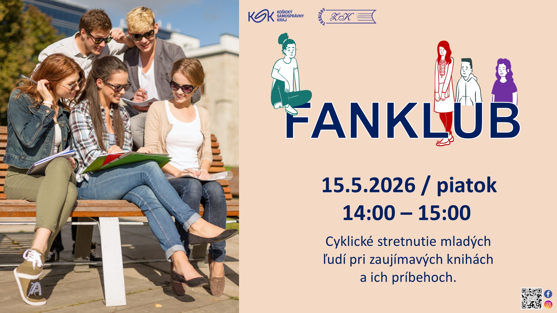 Fanklub mládežníckej knihy je pravidelné stretnutie pre mladých čitateľov, ktorí radi objavujú nové príbehy, zdieľajú svoje dojmy z čítania a diskutujú o knihách, ktoré ich oslovili. Podujatie vytvára bezpečný a inšpiratívny priestor, kde môžu účastníci slobodne vyjadriť svoj názor, odporúčať obľúbené tituly a spoznávať rôzne literárne žánre.