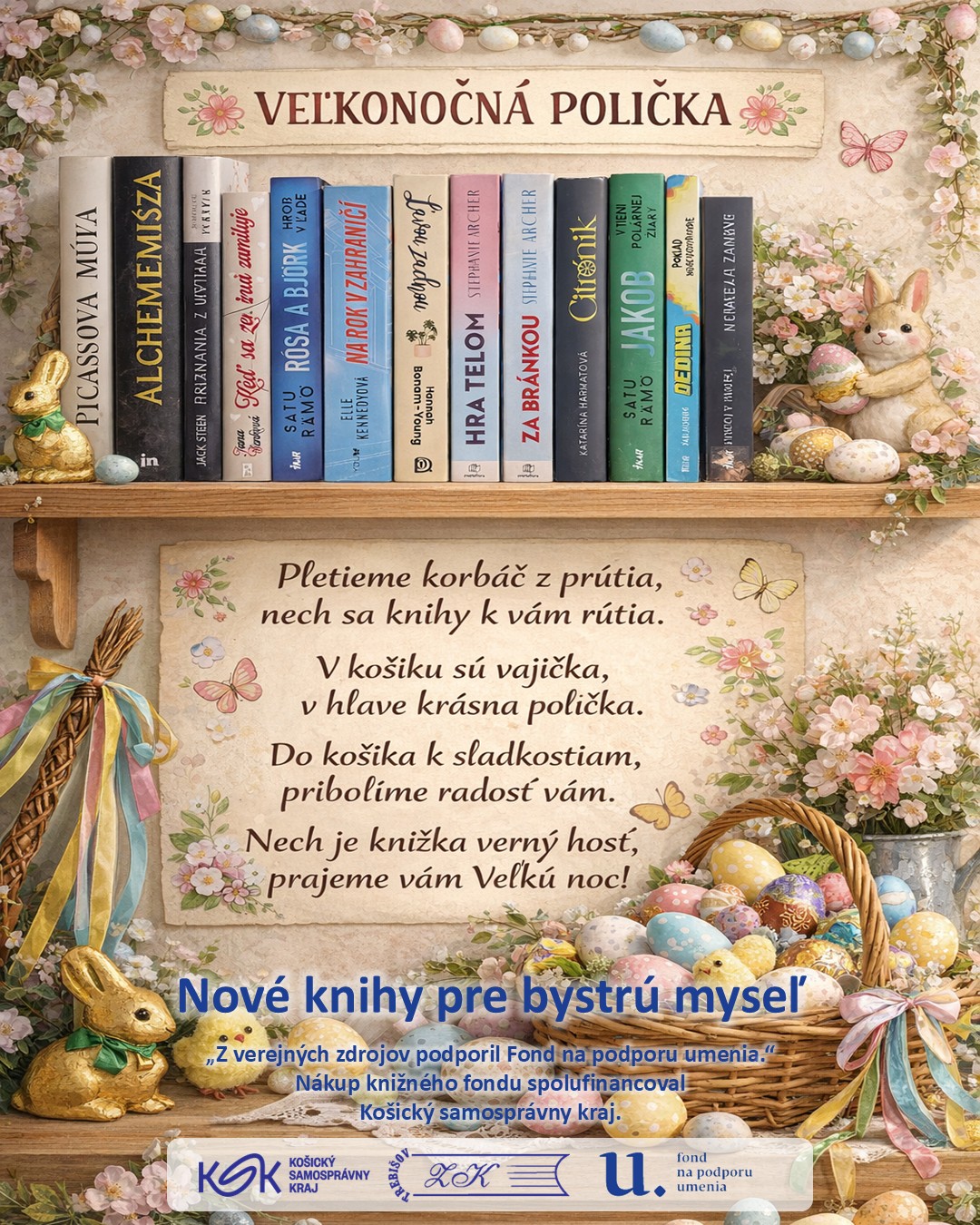 Nové knihy zakúpené z projektu „Nové knihy pre bystrú myseľ“. Z verejných zdrojov podporil Fond na podporu umenia.